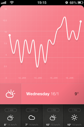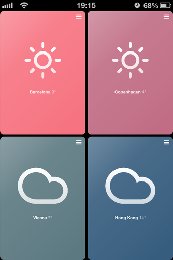 Sun é um aplicativo online que serve para consultar a previsão do tempo em até 4 lugares distintos. Visual elegante e minimalista para iPhone, iPod e iPad usando o Safari.